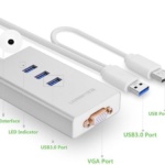 Bộ chia USB 3.0 3 port – USB 3.0 ra VGA 1080P Ugreen 40256