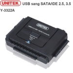 – Cáp chuyển đổi USB 3.0 sang Sata và IDE Unitek Y-3322A. Sử dụng kết nối ổ cứng 2.5, 3.5 HDD, SSD SATA, ổ đĩa quang DVD SATA, DVD IDE với máy tính bàn hay laptop.
