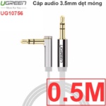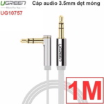 Cáp Audio 3.5mm bẻ góc 90 độ Ugreen 0.5m, 1m, 1.5m, 2m, 3m, 5m. Cáp dẹt, mềm, đầu cáp được mạ vàng 24k