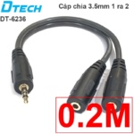 Cáp chia audio 3.5mm 1.5 ra 2 20Cm DTECH DT-6225