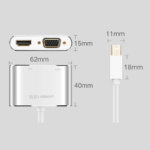 – Chuyển đổi từ cổng MiniDisplayPort (Thunderbolt) sang chuẩn VGA + HDMI thường có trên màn hình máy tính, máy chiếu, Tivi.