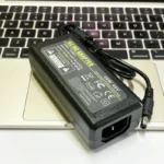 Sản phẩm đi kèm dây DC dài 1.0m có lõi chống nhiễu ferrite core, đầu cắm DC 5.5×2.5mm (tương thích 5.5×2.1mm) và input AC chuẩn IEC C13 – dễ dàng thay/cắm dây nguồn tiêu chuẩn.